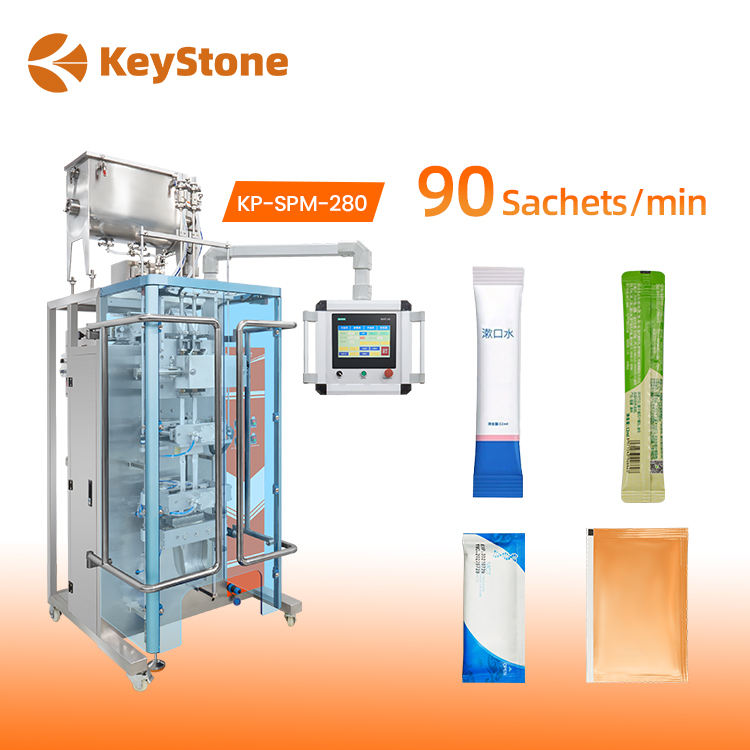 Máquina automática de sellado de 3 y 4 lados para bolsas pequeñas tipo stick, nuevas bolsas para ensalada, y envasado de mermelada de arándanos y líquidos.