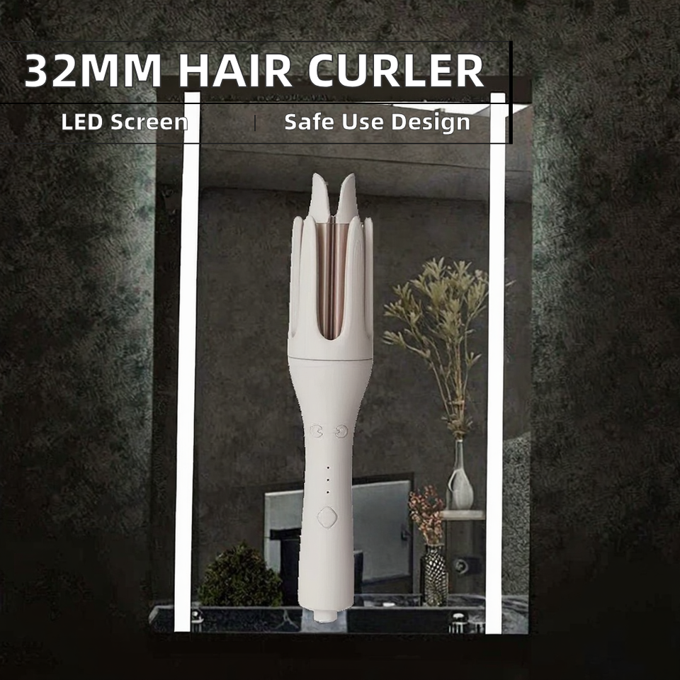 Rizador de pelo de cerámica con ondas de agua de 32mm automático, rollo de huevo portátil, USB LED, Dropshipping transfronterizo para el hogar