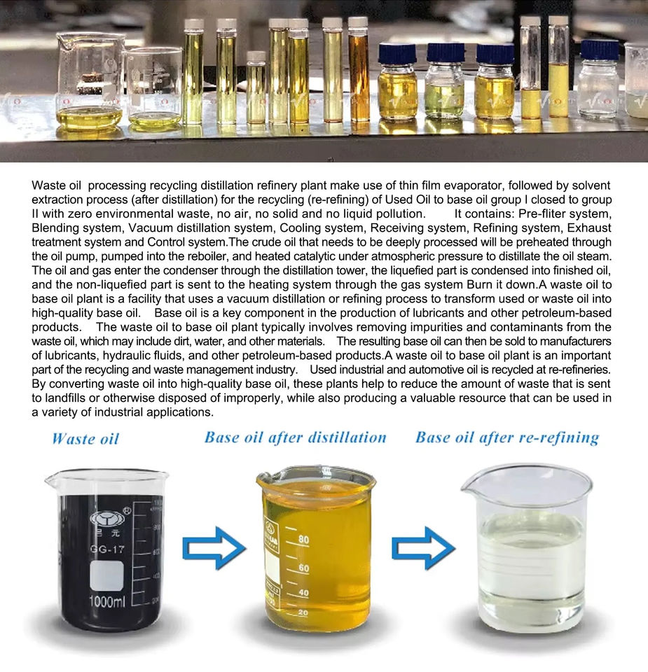 Materias primas:Aceite de pirólisis, aceite de neumáticos. Aceite plástico, oll del motor