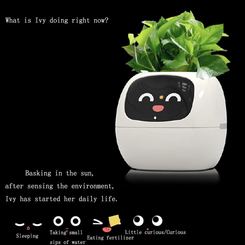 Mini Maceta Inteligente de Plástico con Sensor Automático IA y Absorción de Agua para Escritorio Florero Inteligente para Planta Mascota Digital
