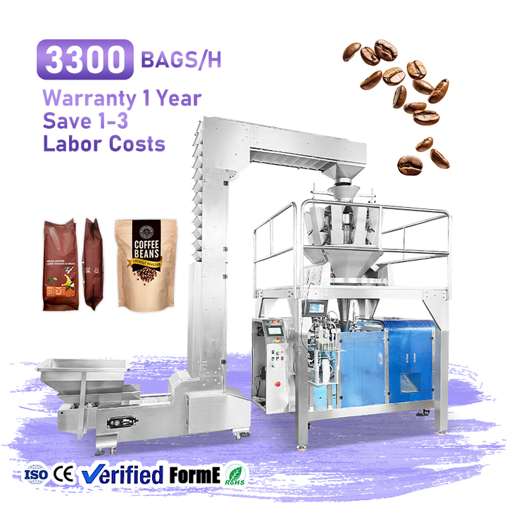 Máquina Automática para Llenar y Empacar Bolsas Preformadas de Granos de Café Tostados, Máquina para Llenar y Empacar Bolsas Doypack