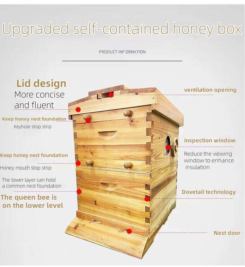 Colmena automática y 7 marcos automáticos Cajas de apicultura de colmena de abejas autofluidas recubiertas de cera de abeto de China para extraer miel