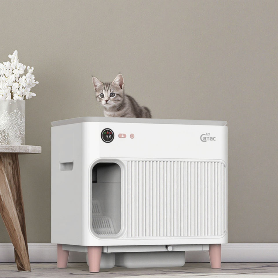 Caja de arena automática para gatos con control de aplicación, caja de arena autolimpiante WIFI sin olores, inodoro para mascotas, caja de arena de capacidad Extra grande