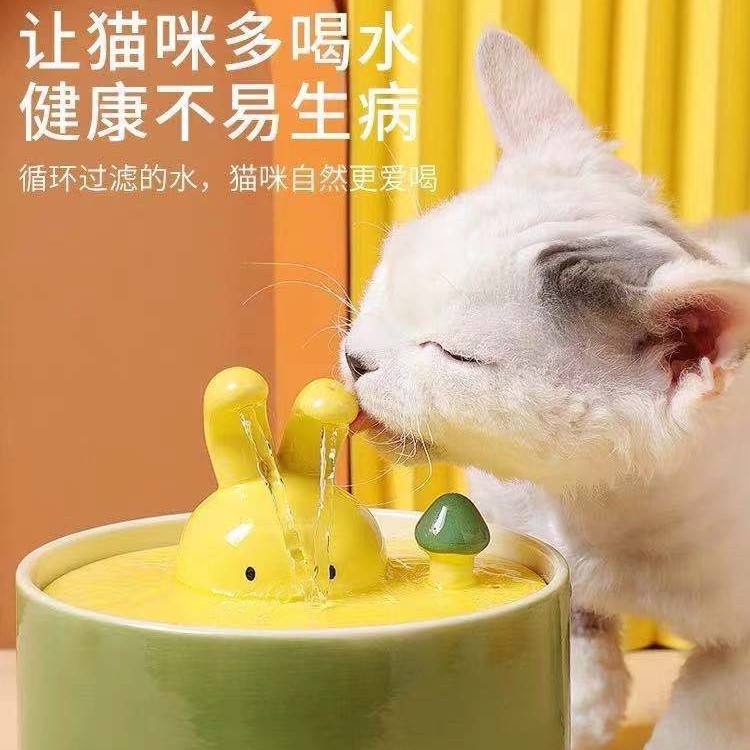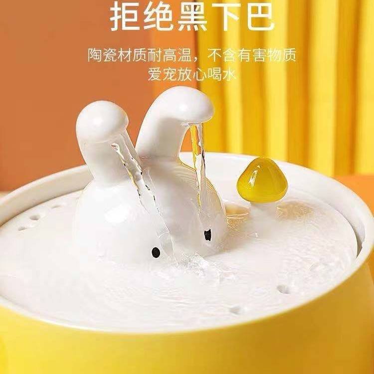 Fuente de agua automática de cerámica para mascotas con forma de conejo y sistema de filtración para gatos y perros