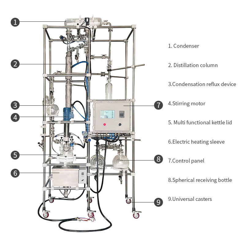 Kit de inicio automático de laboratorio de química, reactor de vidrio de 50L para purificación de alcohol con motor de recipiente a presión, núcleo de bomba PLC