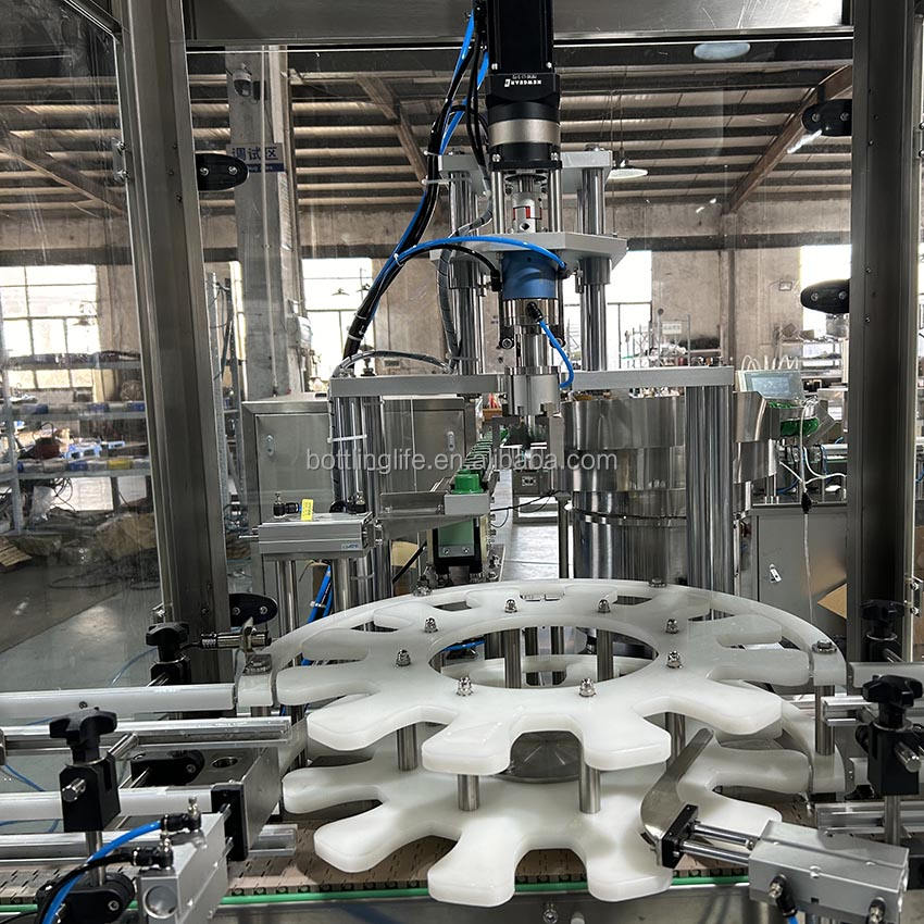 Máquina taponadora de tornillos de mandril automática con clasificador de tapas Nueva condición para apretar tapas en frascos de vidrio y latas
