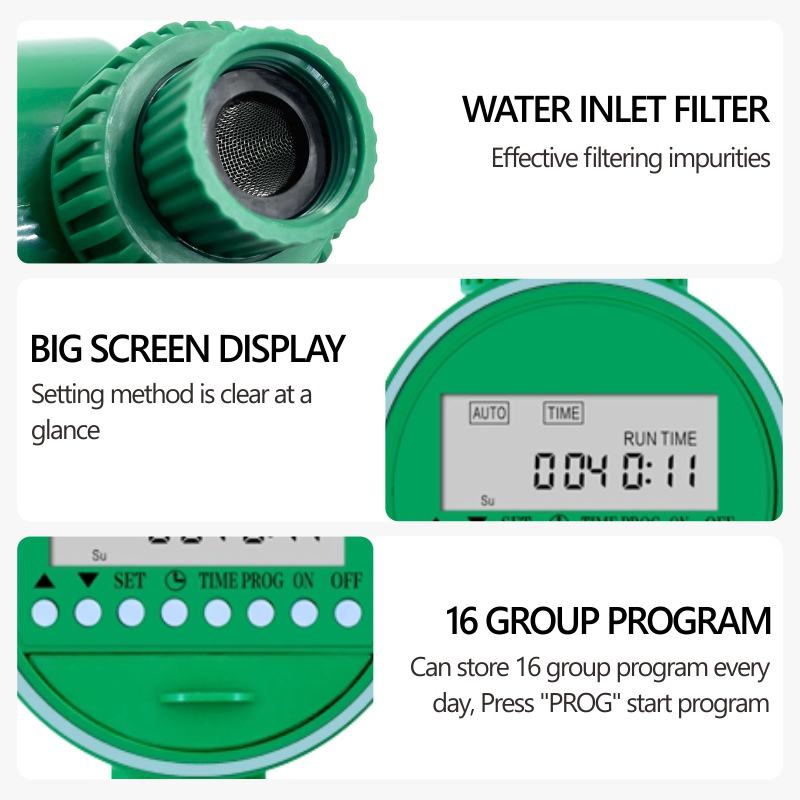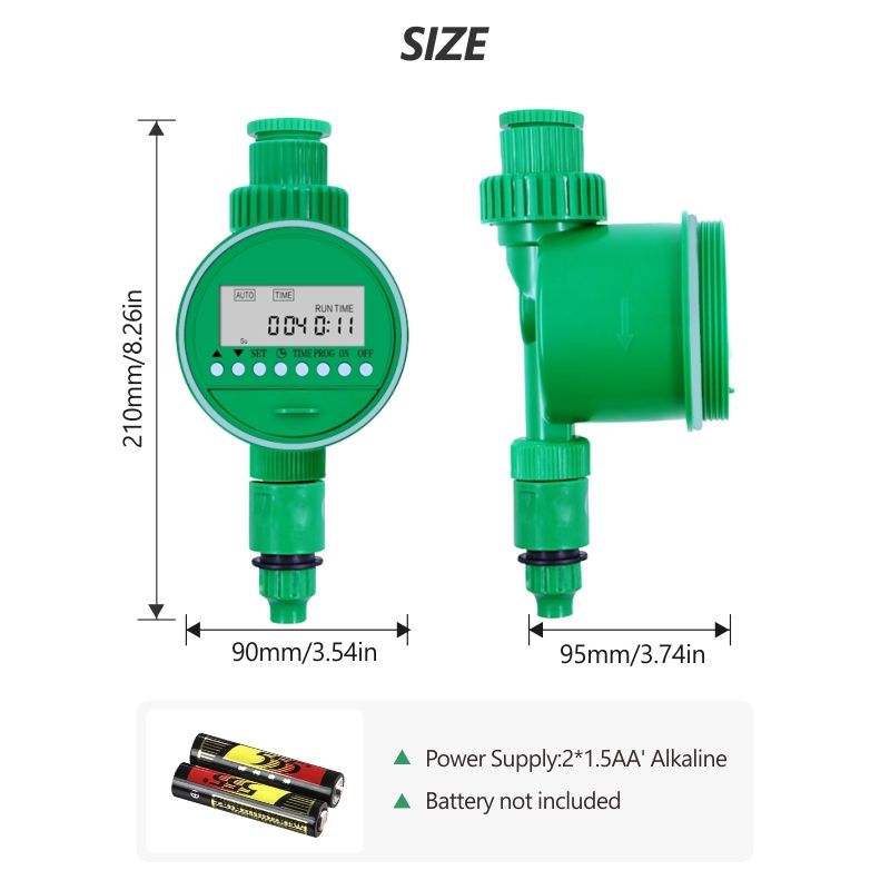 Temporizador de Riego Automático para Jardín, Color Personalizado Verde, Plástico, Multifrecuencia, 2 Baterías, Presión de 0-4 bar, Conexión a Grifos