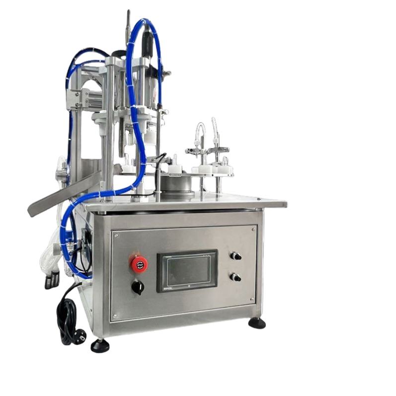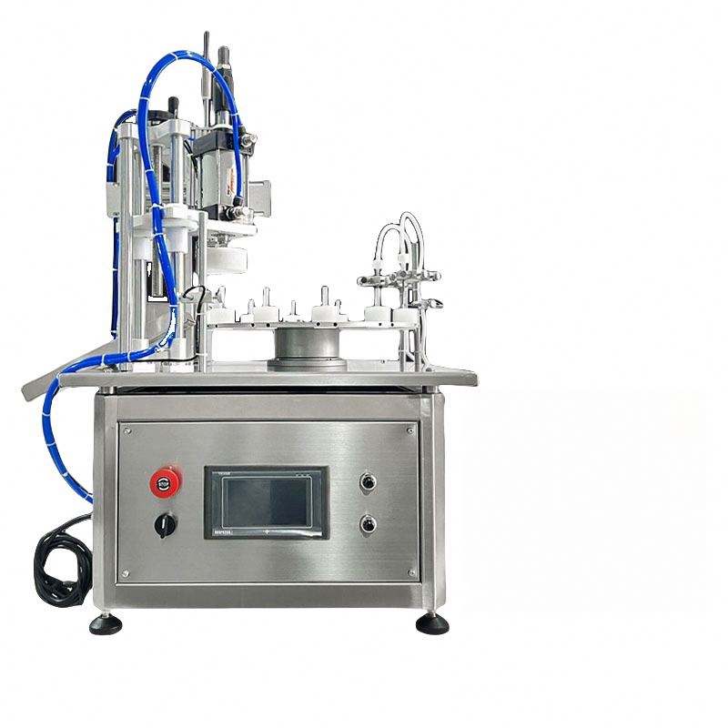 Máquina Automática de Llenado y Tapado con Mesa Giratoria, Aplicable para Perfumes, Aceites Esenciales, Cosméticos, Spray, Enjuague Bucal, Vinos y Otros Productos