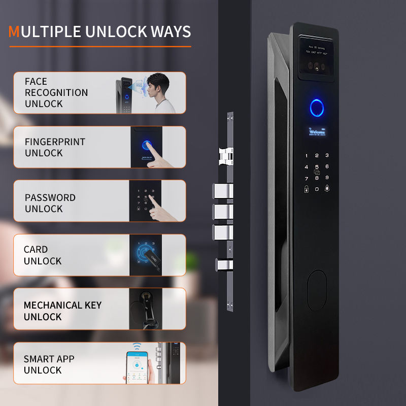 Huella digital/contraseña/aplicación Tuya/contraseña temporal/llave mecánica/detección facial