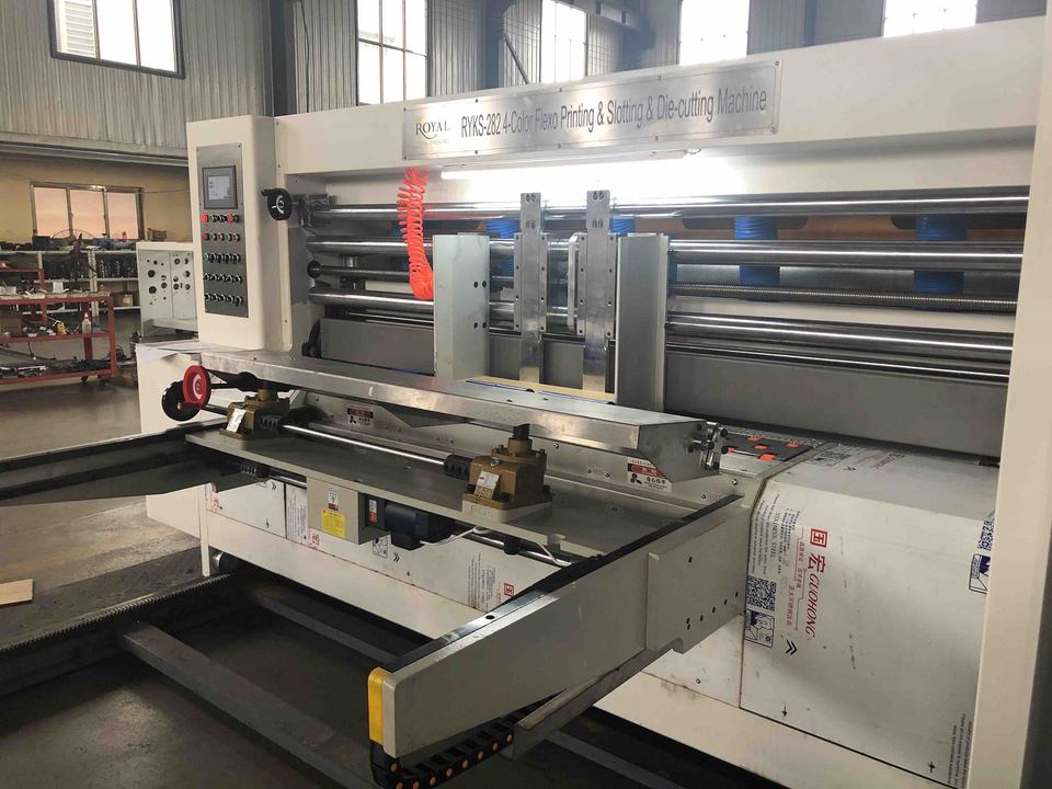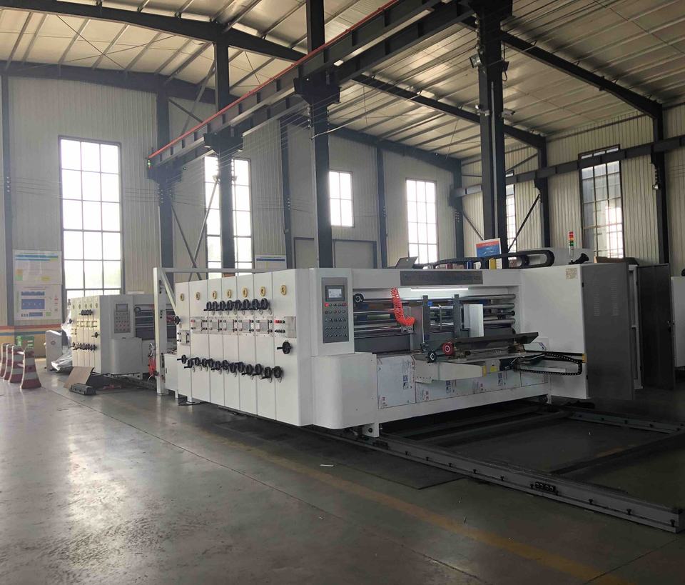 Máquina Automática Flexográfica de Cuatro Colores para Impresión y Ranurado de Cartón con Máquina Apiladora