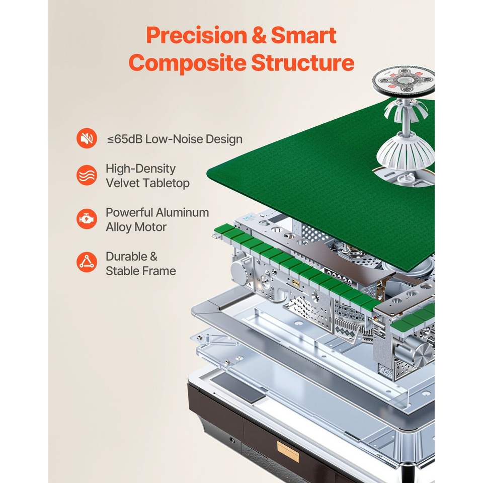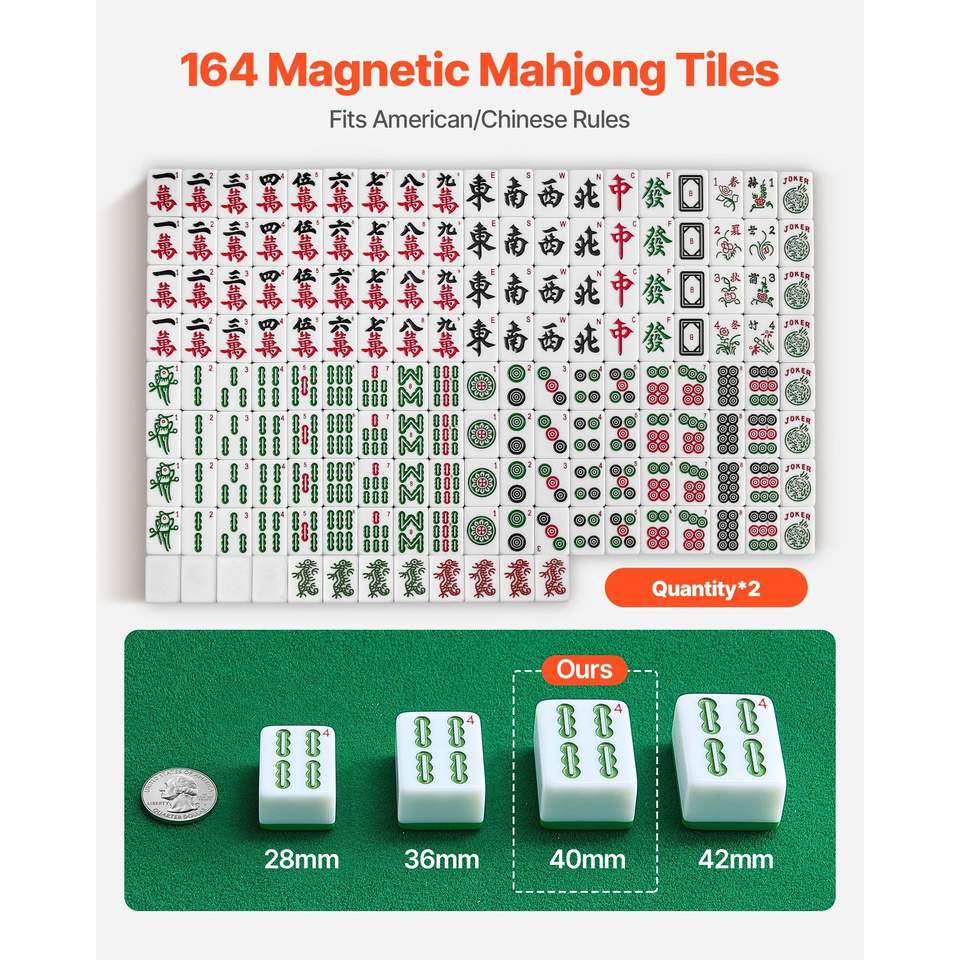 Mesa de Mahjong Plegable Automática con Fichas de 40 mm, 2 Juegos (164 Piezas), Estilo Montaña Rusa para Juegos de Azar