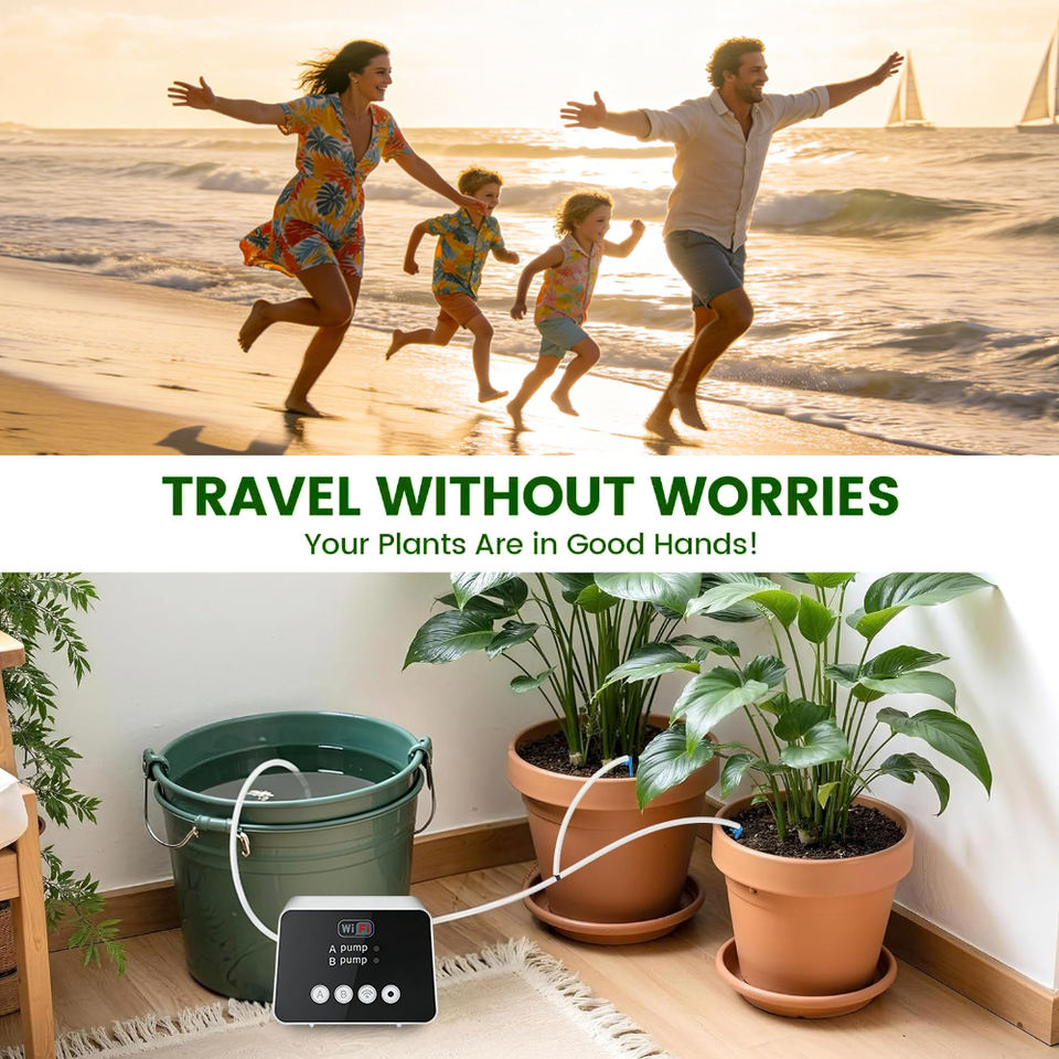 Dispositivo de Riego Automático para Jardín, Temporizador Digital con Sistema de Riego por Goteo para Plantas de Interior, Riego Automático para Plantas en Vacaciones