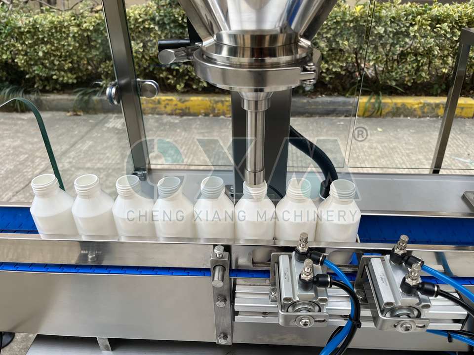Máquina automática de llenado de botellas y latas para hierbas, especias, leche, proteínas en polvo, con alimentador al vacío.