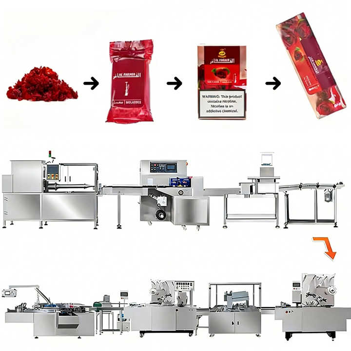Línea de Producción y Empaquetado Automática de Cachimbas para Melaza, Máquina Empacadora de Bolsas de Cachimba, Máquina Encartonadora de Cajas de Cachimba