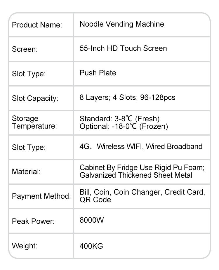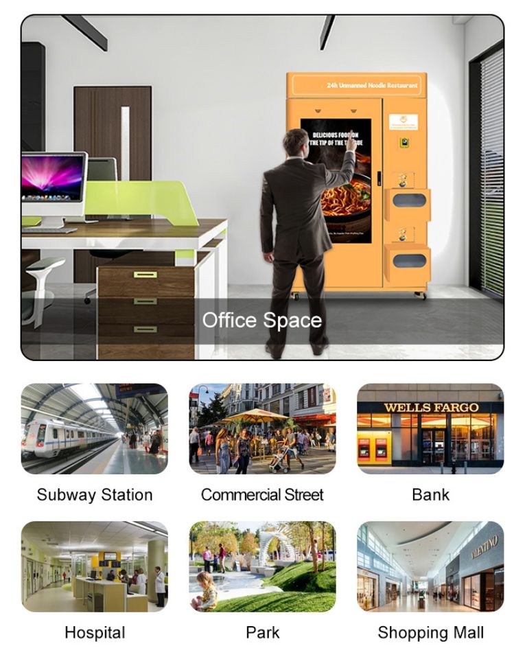 Máquina Expendedora Automática de Comida Caliente con Pantalla Táctil, Operación 24/7, Monitoreo Remoto, Cocina Instantánea de Fideos Ramen en Vaso, Acepta Tarjetas de Crédito