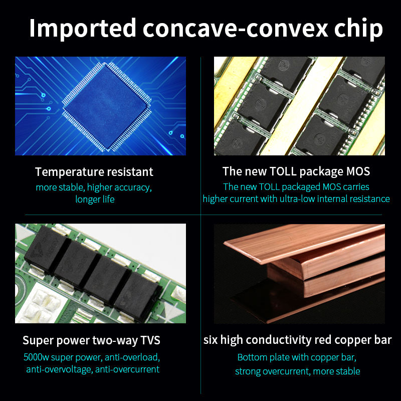 BMS Inteligente Automático para Baterías LFP NMC de 8s-24s, 36V 48V 60V 72V, 40A 60A 100A 150A 200A con UART 485 Canbus