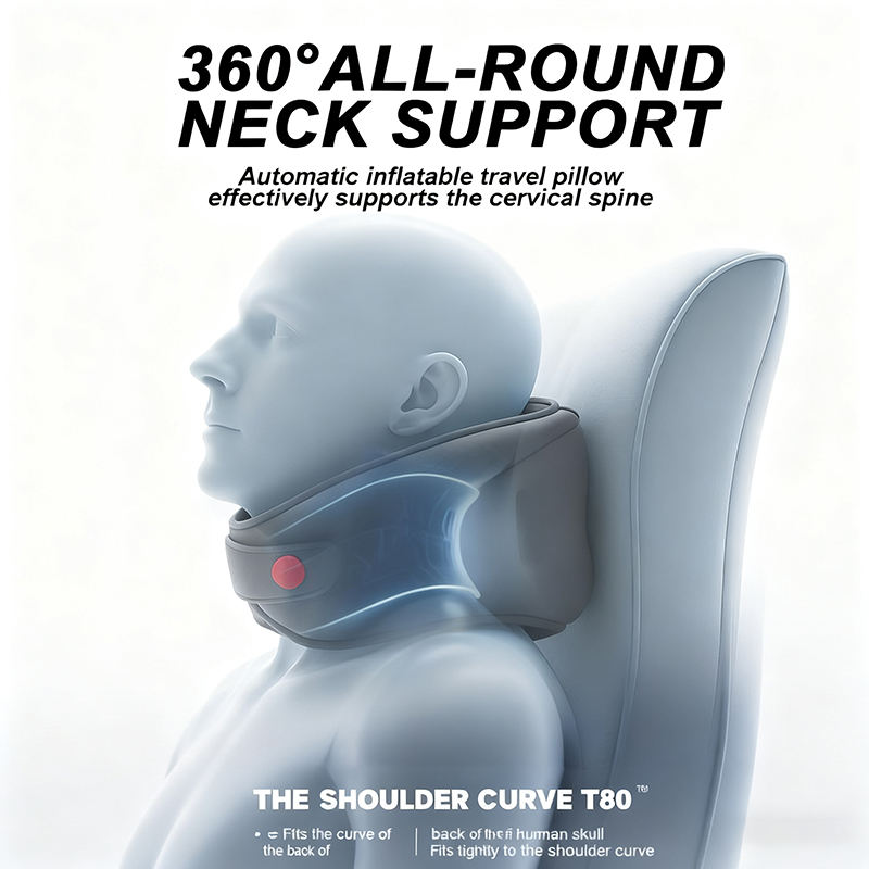 Reposacabezas de poliéster en forma de U plegable portátil inflable automático almohada para dormir para el cuello para avión viaje en coche