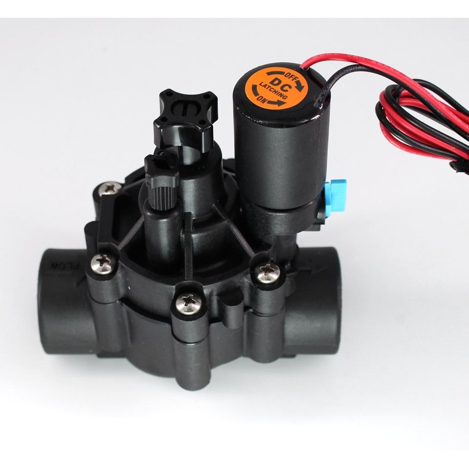 Válvula solenoide de riego automático de 1 pulgada con cierre de CC para jardín, césped y uso exterior, cuerpo de plástico con cables rojos y negros