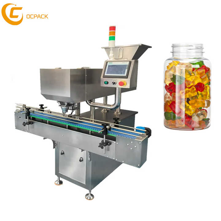 Máquina Automática para Contar y Envasar Caramelos de Gelatina en Botellas de Vidrio, Frascos y Latas