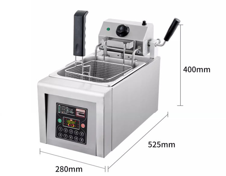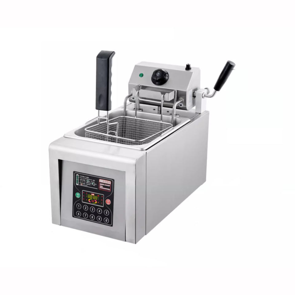 Freidora eléctrica de elevación automática, freidora inteligente comercial, máquina de pollo frito y patatas fritas de un solo cilindro de 8L