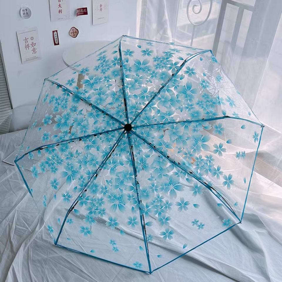 Paraguas Automático/Manual Transparente de 3 Pliegues, Resistente al Viento, de PVC/POE, con Marco de Metal y Fibra de Vidrio, para Adultos, Regalo Empresarial