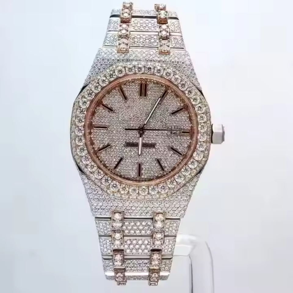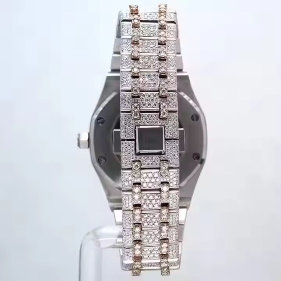 Reloj Moissanite automático para hombres y mujeres Iced Out VVS Diamond Luxury Sapphire Crystal Glass Acero inoxidable