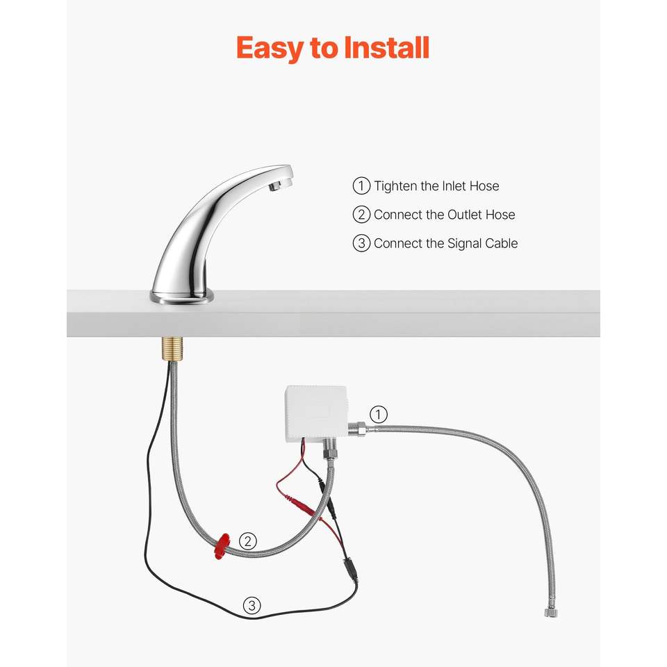 Grifo Automático con Sensor de Movimiento para Lavabo de Baño, Sin Contacto, para Inodoro, Agua Fría, con Cubierta de Orificio, Funciona con Batería