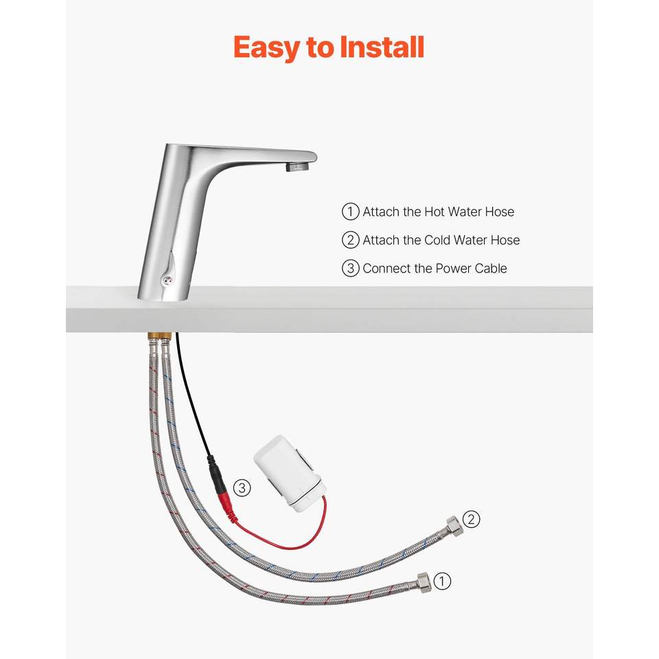 Grifo de Lavabo Automático con Sensor de Movimiento, Monomando, Manos Libres, Ajustable, Agua Fría y Caliente para Baño