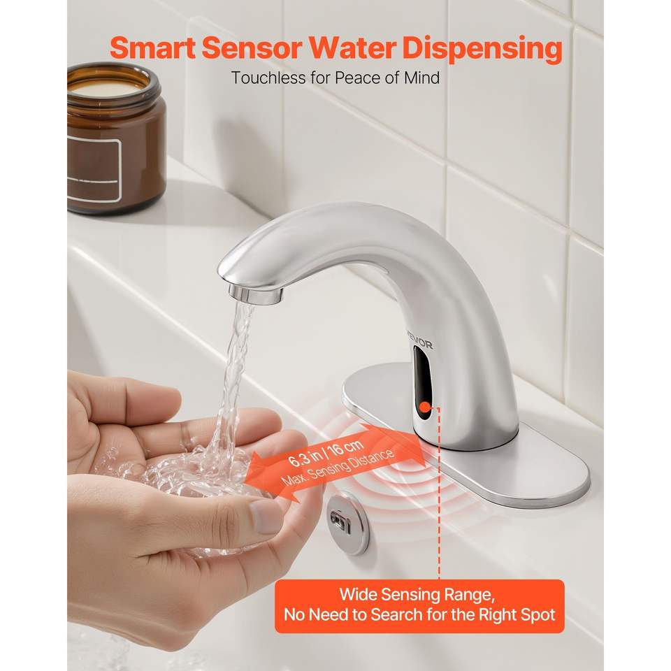 Grifo automático sin contacto con sensor de movimiento para lavabo de baño, ajustable, funciona con pilas, con placa de cubierta para orificio de grifo de inodoro.