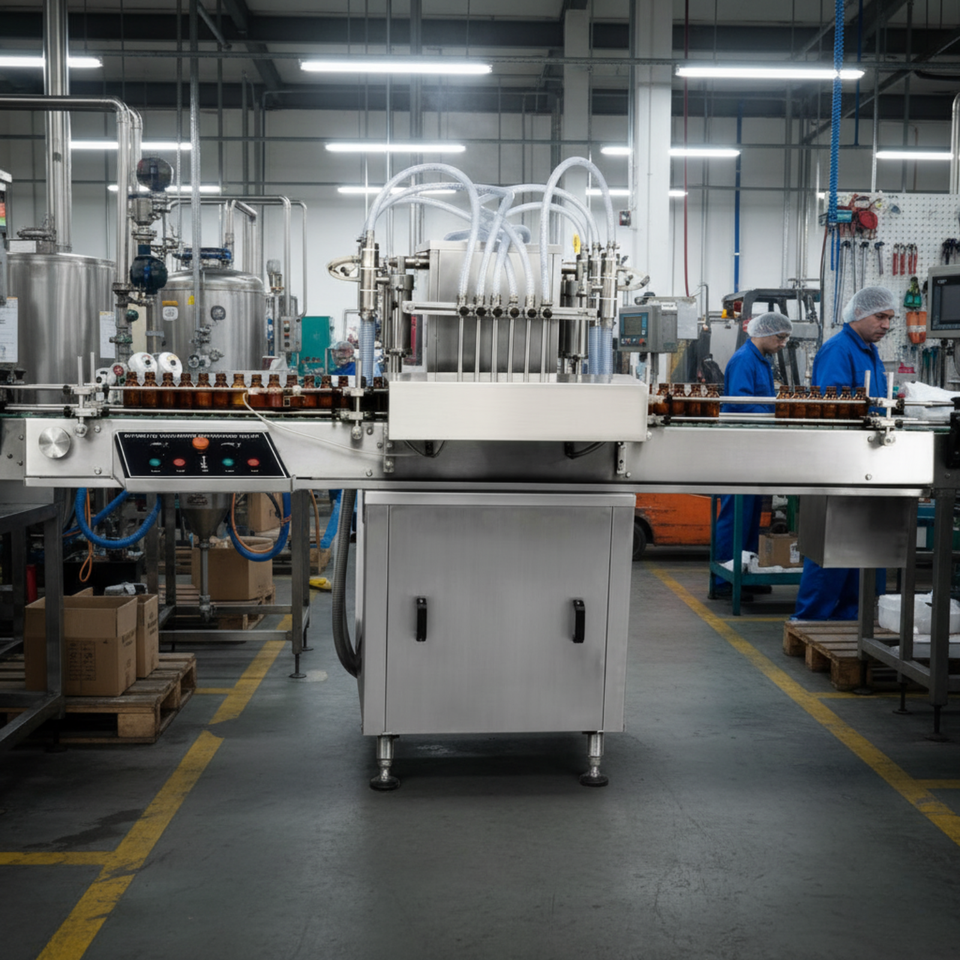 Máquina Automática de Llenado de Botellas de Líquido con Múltiples Cabezales, Línea de Empaquetado Industrial de Acero Inoxidable, Sistema de Llenado de Alta Velocidad y Precisión