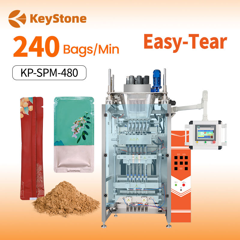 Máquina Empacadora Vertical Automática de Múltiples Carriles con Sellado Trasero de 3/4 Lados VFFS para Llenado de Sobres de Polvo, Gránulos, Líquidos y Geles