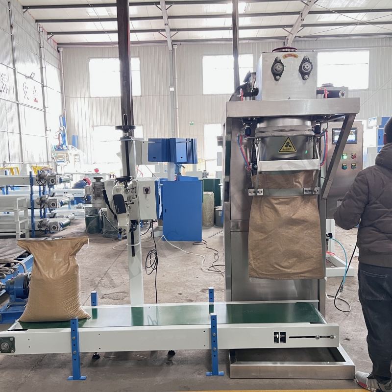 Máquina automática de envasado de polvo de boca abierta 10kg 25kg 50kg línea de costura bolsa de papel máquina de embalaje de aplicación de alimentos