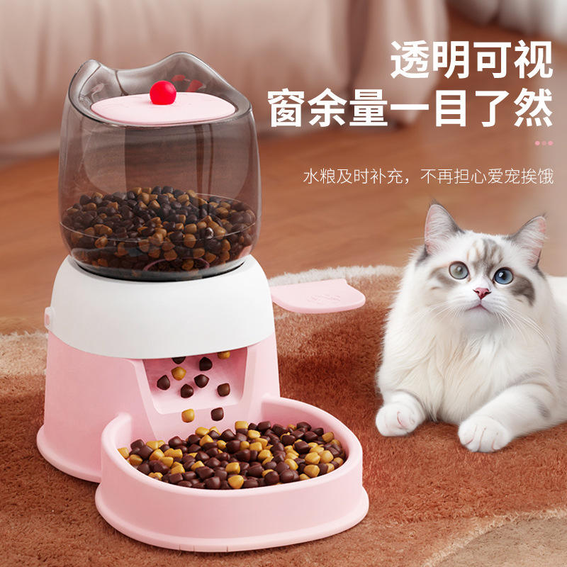 Comedero automático para mascotas, tazón de alimentación para perros y gatos de gran capacidad de 2L con botón pulsador, color rosa y azul cielo