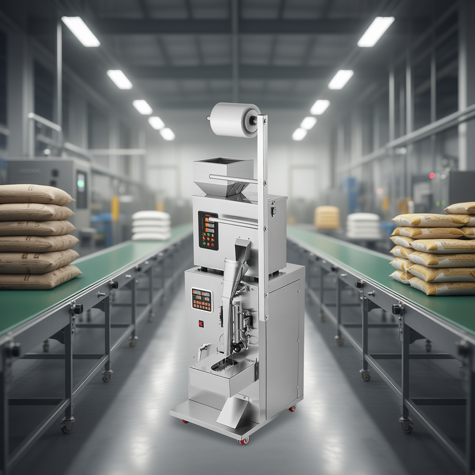 Máquina Automática de Llenado y Empaquetado de Bolsas de 1-100g para Té, Semillas, Granos, Harina, con Pesaje y Control PLC Eléctrico
