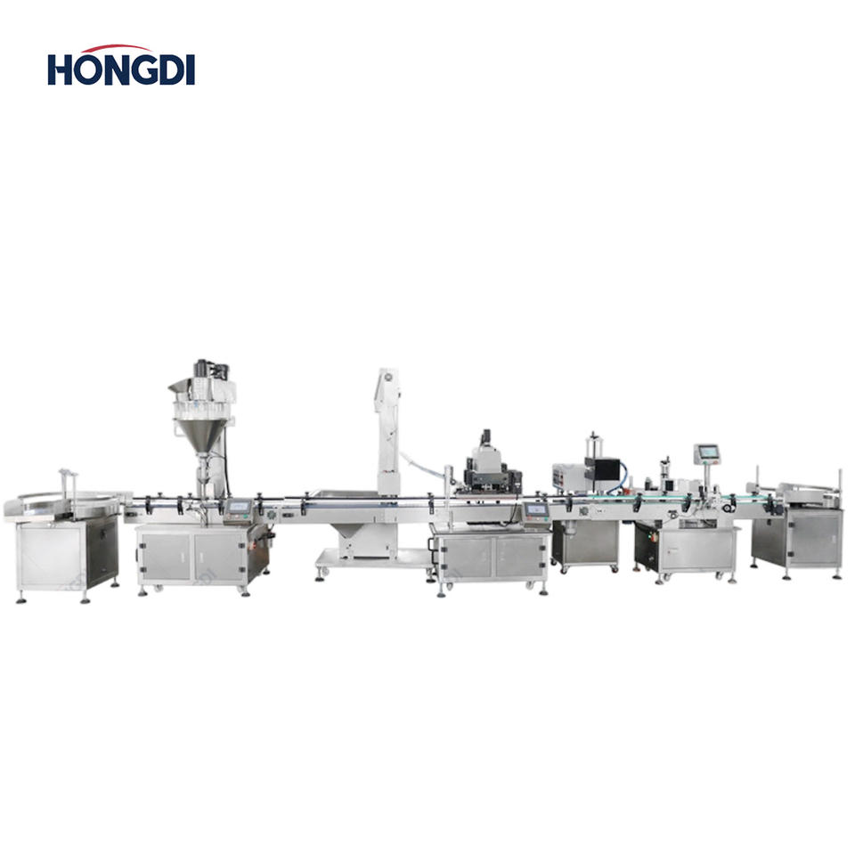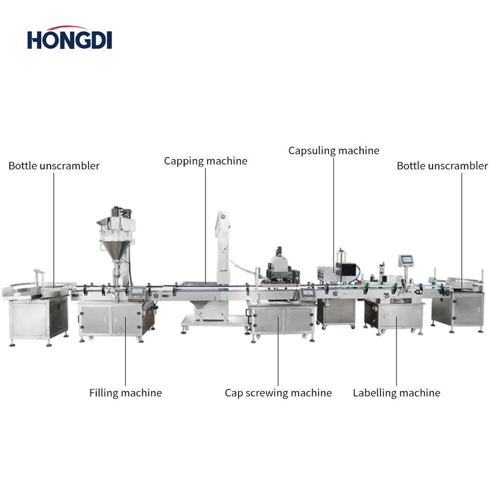 Clasificador de botellas, Rellenadora Vertical de Polvo con Tornillo, Sellador de tapas, Máquina etiquetadoraClave de máquinas