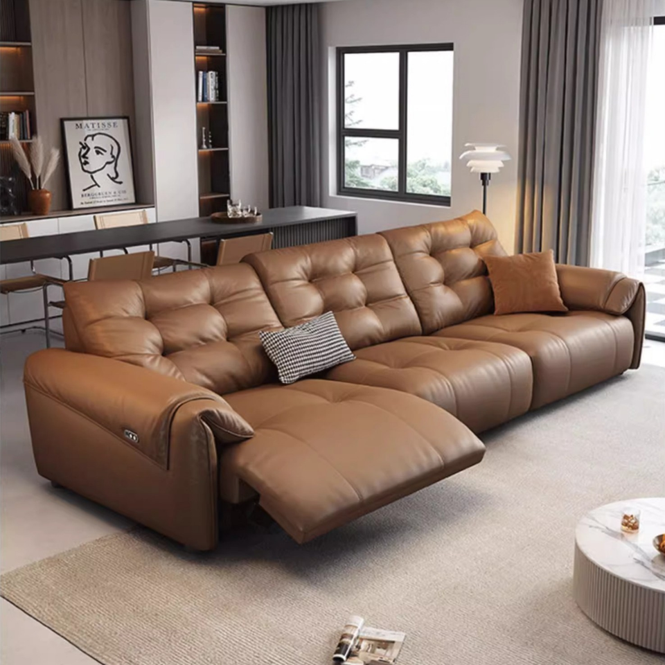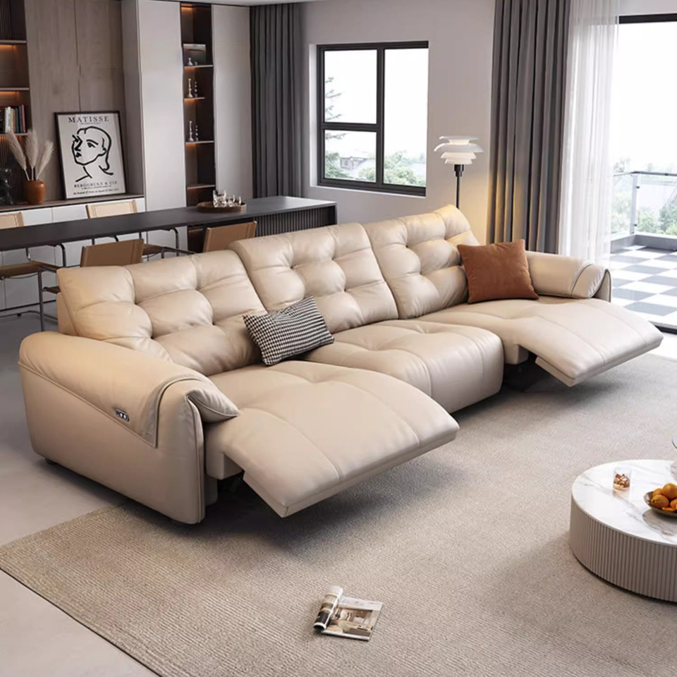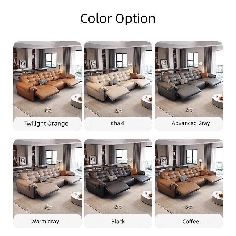 Juego de Sofá Seccional Modular de Piel Genuina Reclinable Eléctrico Automático Retráctil y Multifuncional