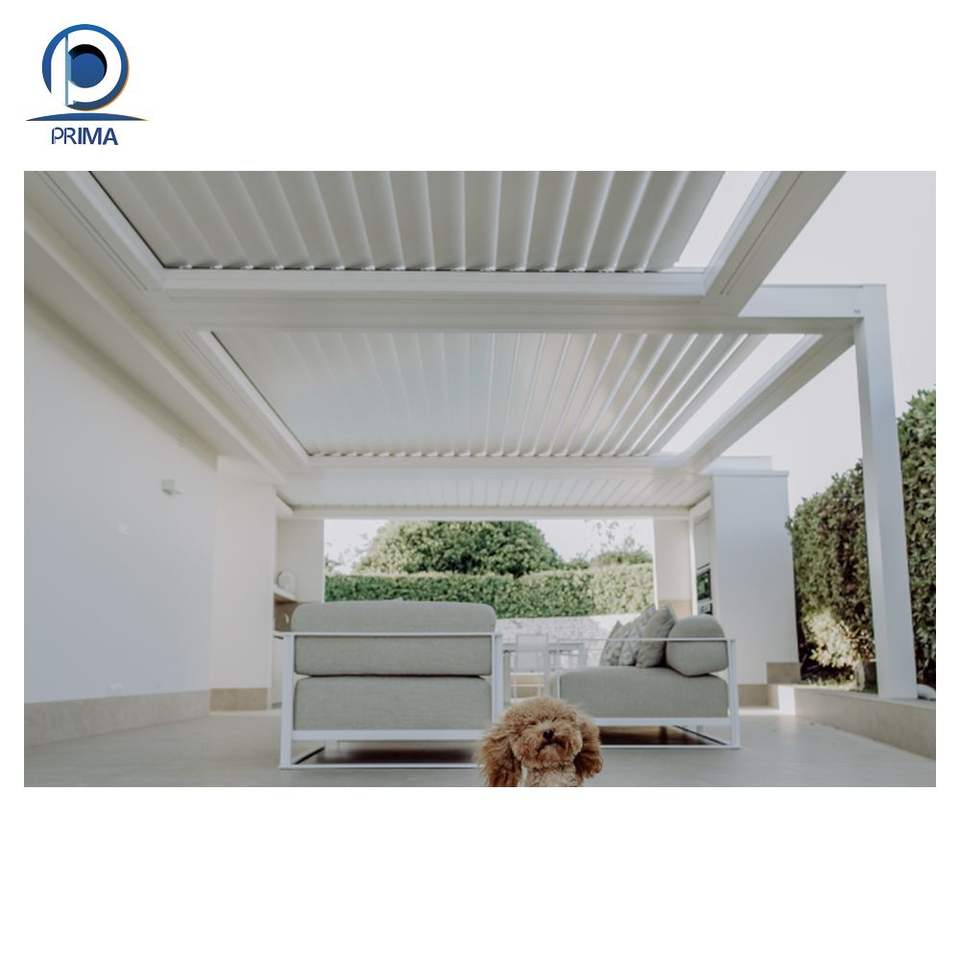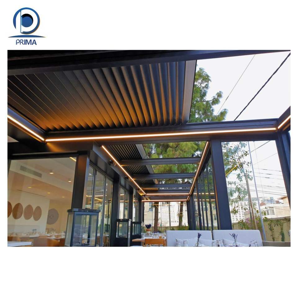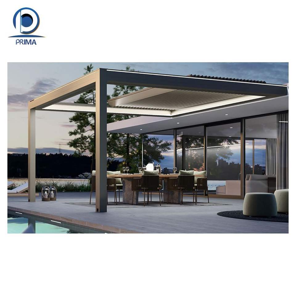 Pabellón de aluminio retráctil automático con techo solar y cenador enrollable y cortinas de cenador para patios