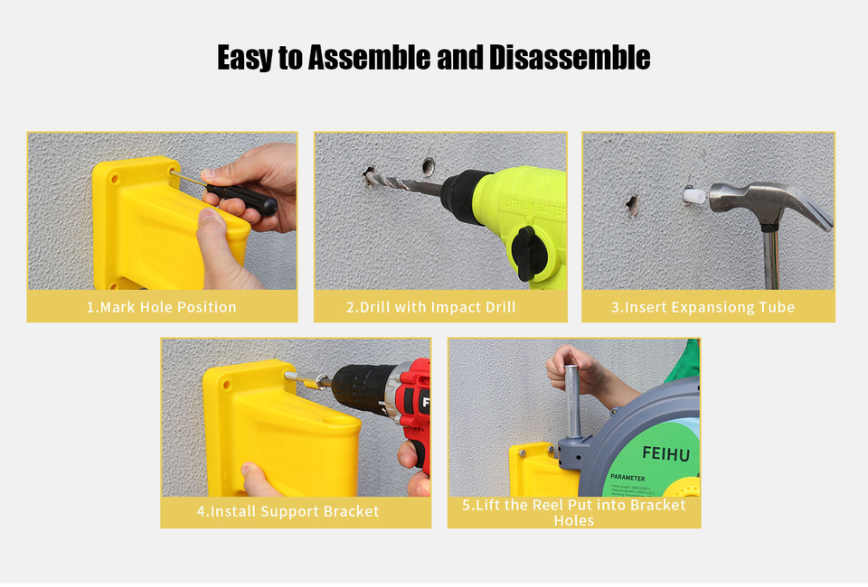 Carrete de manguera de jardín retráctil automático Equipo de lavado de coches Lavadora a presión Carrete de manguera Agua Lavado de coches Carrete de manguera de aire