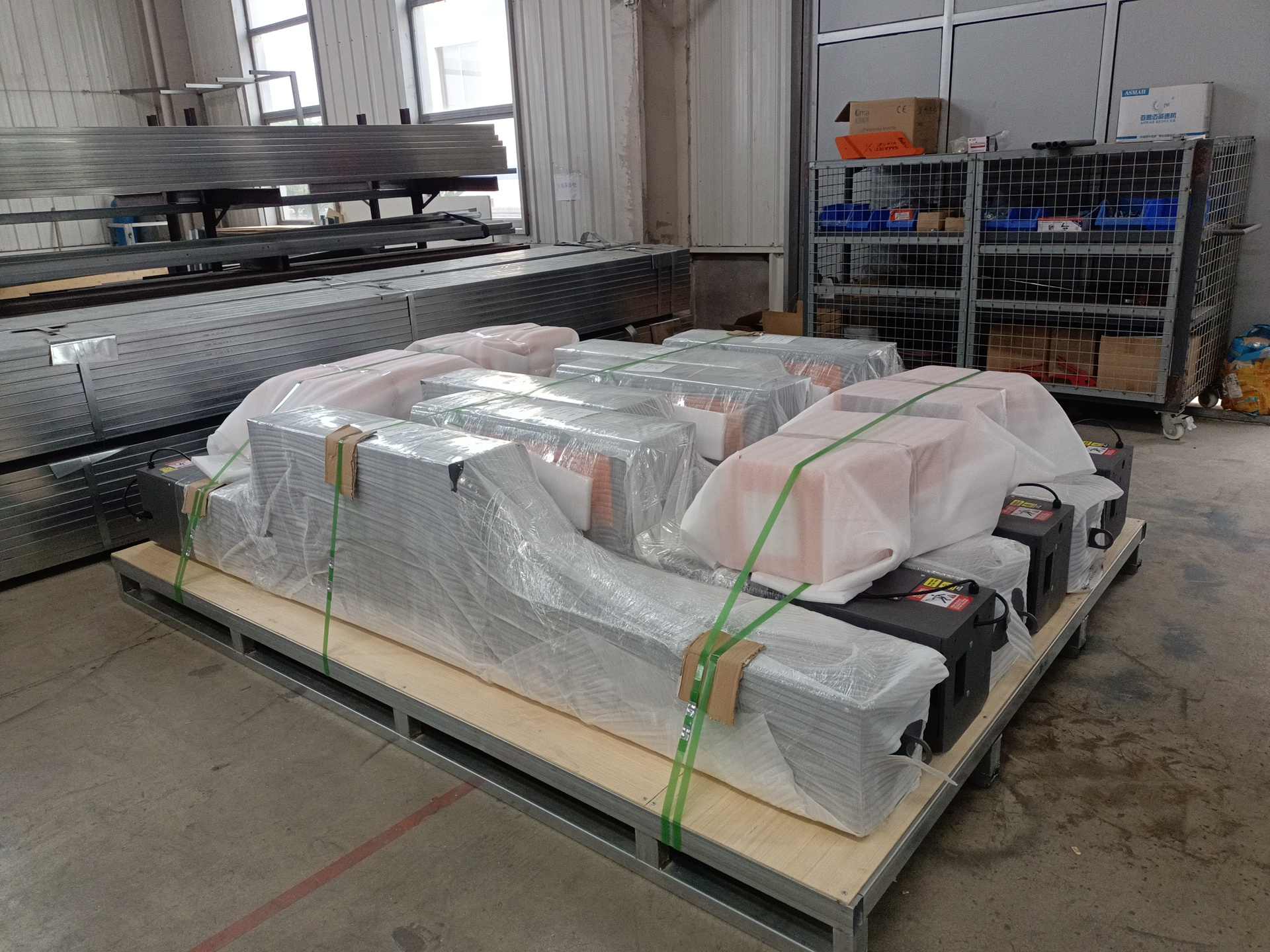 Envuelto con película y fijado con marco de acero