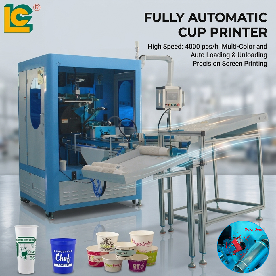 Impresora Rotativa Automática de Pantalla con Curado UV LED para Vasos de PP, PET y Papel, Impresión de Logotipos de Alta Calidad en Vasos Desechables