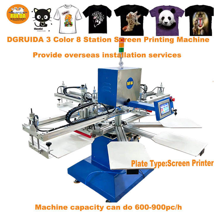 Máquina Automática de Serigrafía, Tamaño de Paleta 250x300mm, Máquina de Impresión de Marcas con 8 Estaciones para Taller