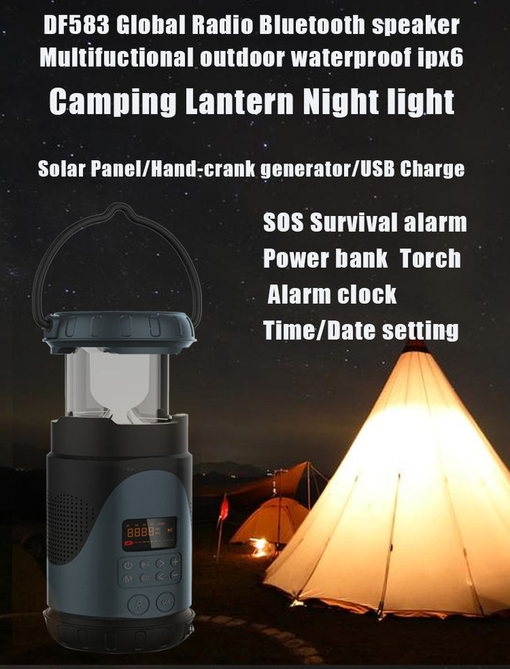 Nombre del producto:Radio BT altavoz con luz de camping banco de energía