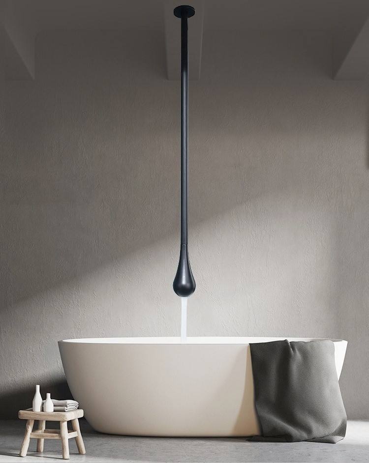 Grifo suspendido de techo de detección automática Grifo de lavabo de cobre de agua fría caliente en forma de gota Longitud personalizable