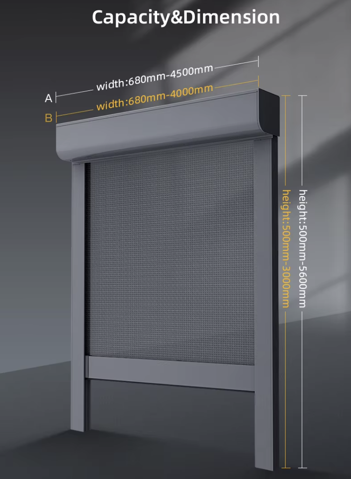 Persianas enrollables eléctricas exteriores automáticas inteligentes con cremallera, instalación integrada, para protección contra el viento, lisas