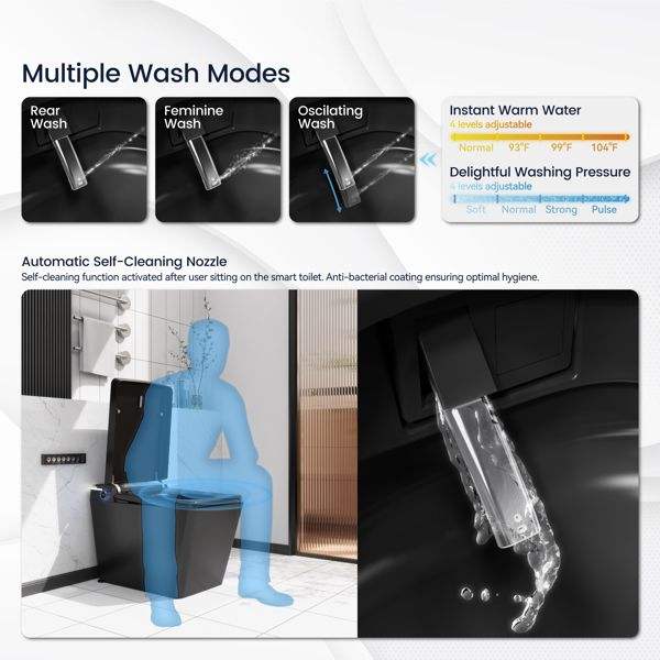 Inodoro Inteligente Automático con Control Remoto Inalámbrico, Tapa de Apertura y Cierre Inteligente, Accesorio de Baño sin Agua