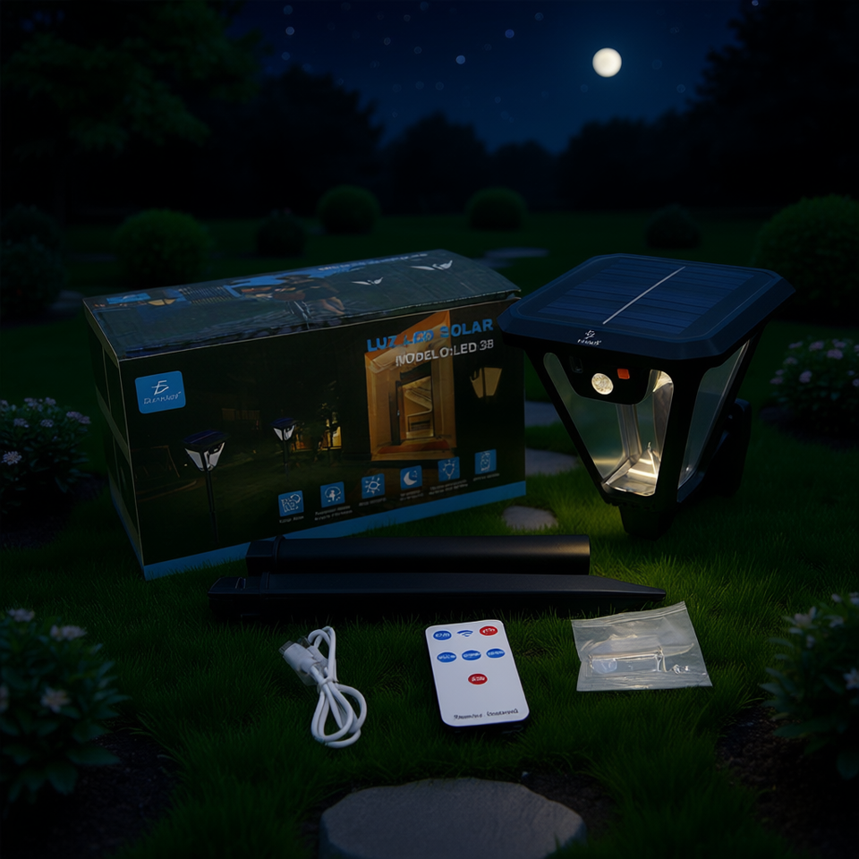 Lámpara de jardín automática solar y con batería - resistente al agua, recargable, alta luminosidad