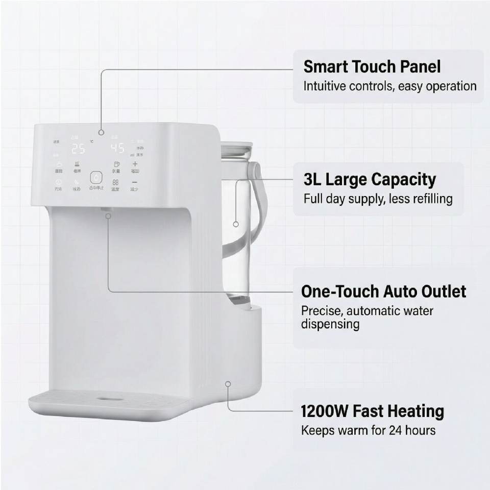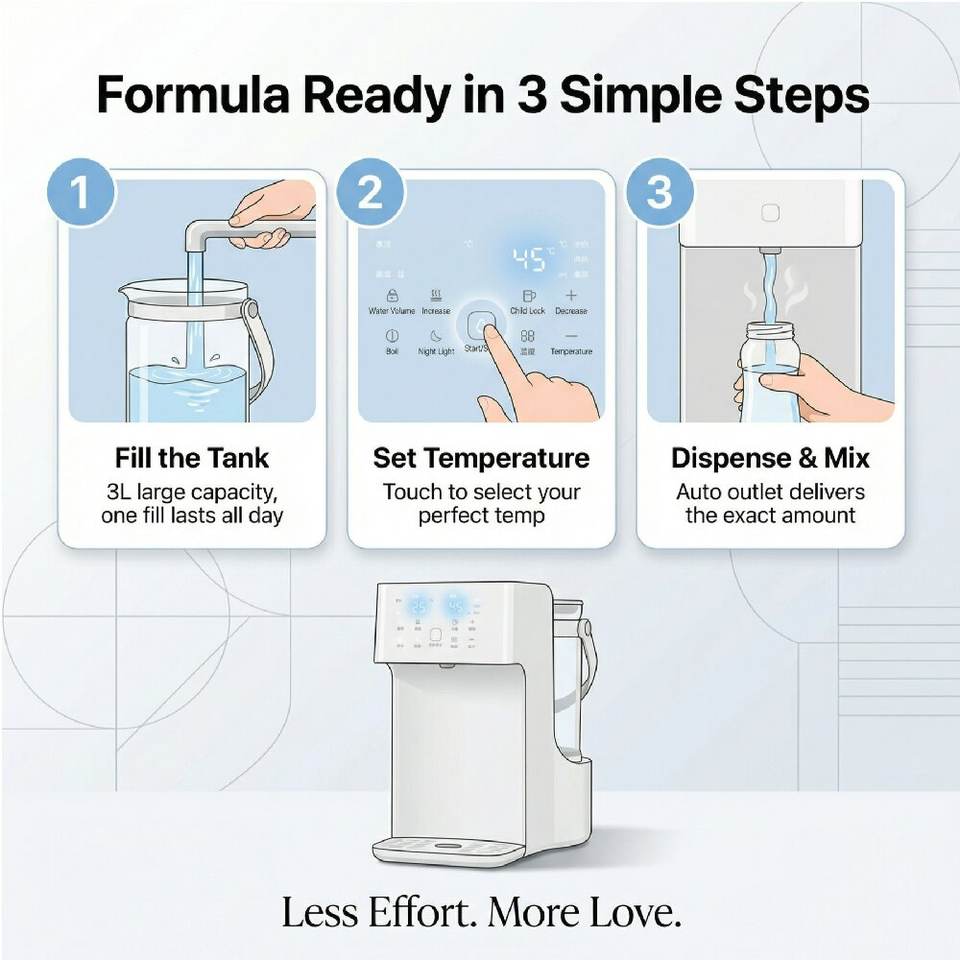 Preparador Automático de Fórmula para Bebés de Acero Inoxidable, Hervidor Eléctrico de 3L con Control de Temperatura y Dispensador con Función de Mantener Caliente para Bebés