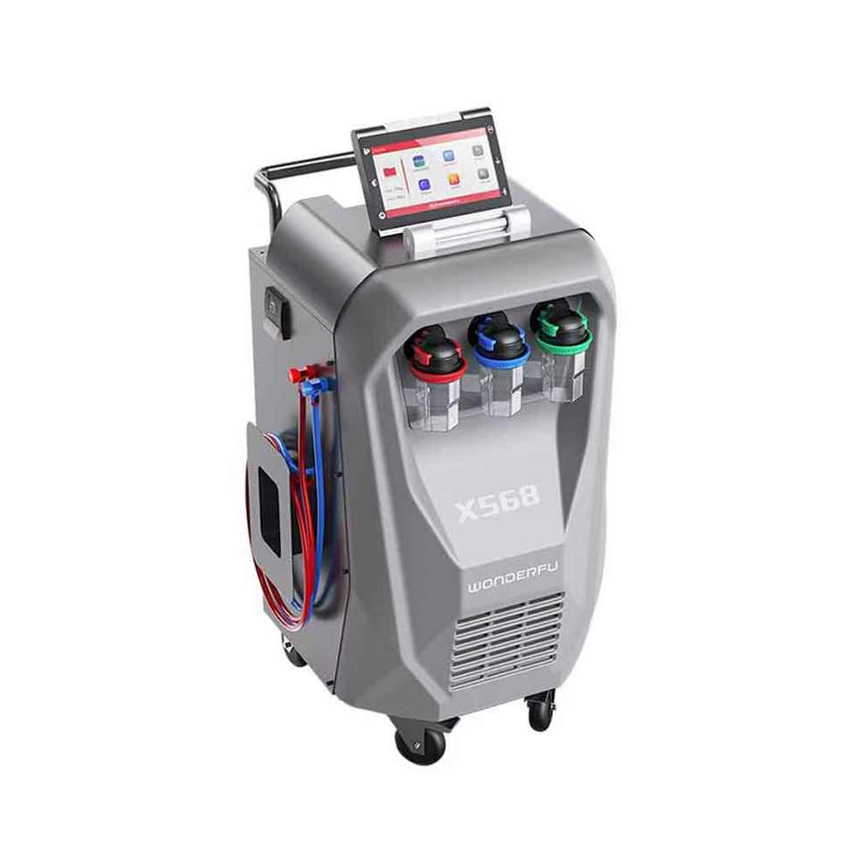 Pantalla táctil automática R134A AC acondicionador máquina de reciclaje de Gas X568 A/C recuperación y máquina de descarga con base de datos de refrigeración