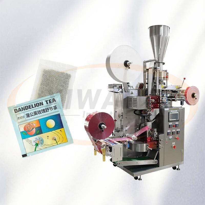 Máquina empacadora automática de bolsitas de té controlada por PLC para llenado de bolsas exteriores interiores, corte longitudinal para papel de vidrio, envasado de alimentos
