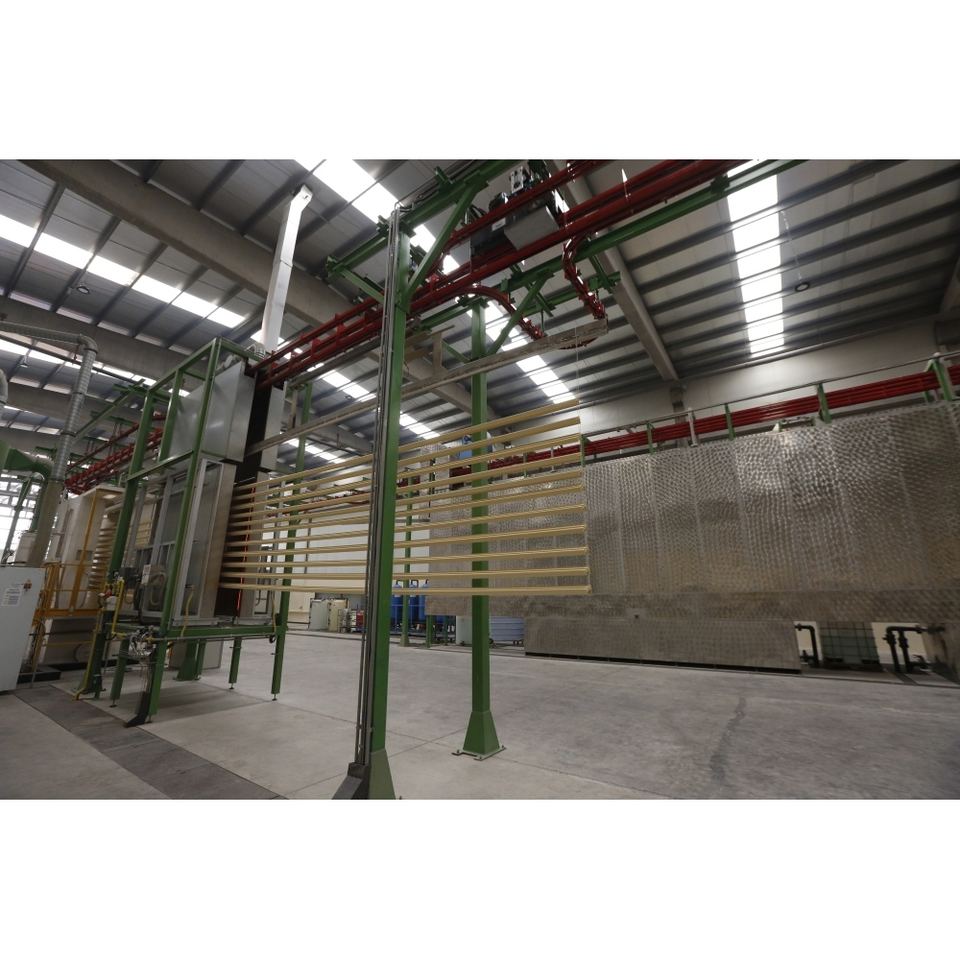 Línea de Pintura en Polvo Automática Trasmetal para Perfiles Horizontales de Aluminio, Tecnología Italiana para el Procesamiento de Productos Metálicos